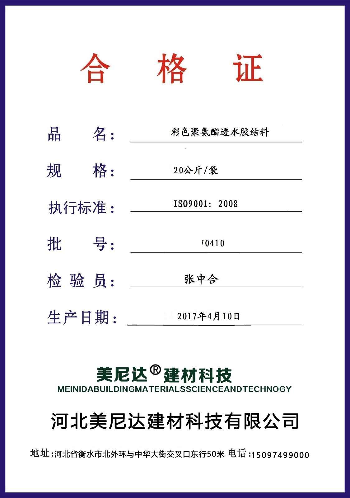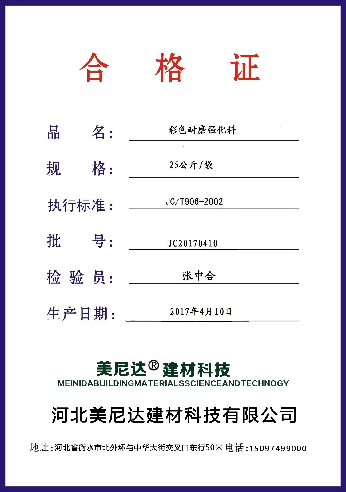 公司名稱:河北美尼達建材科技有限公司
