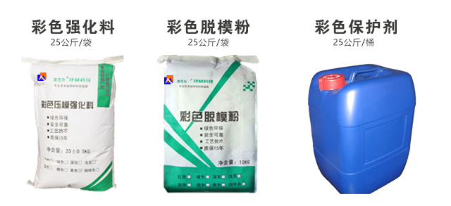 4.彩色脫模粉處理:施工的表面均勻拋撒彩色脫模粉,將整個(gè)表面覆蓋,同時(shí)在模具的表面也撒上一些脫模粉;