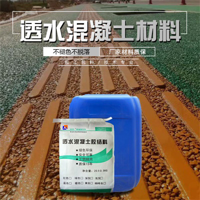 透水混凝土膠結(jié)料是以高強(qiáng)度硅酸鹽水泥為基料,配以多種助劑增加強(qiáng)度與粘結(jié)力組成的粉狀料,并可按用戶要求加入無機(jī)耐磨顏料,使其和碎石、水按照一定比例混合后,組成不同色彩的水混凝土面層。